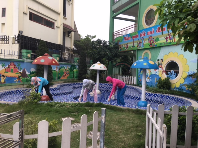 Ngày 31/03/2018 100% cán bộ giáo viên nhân viên tham gia tổng vệ sinh môi trường phòng chống dịch bệnh, diệt muỗi, diệt bọ gậy trong và ngoài khuôn viên nhà trường.