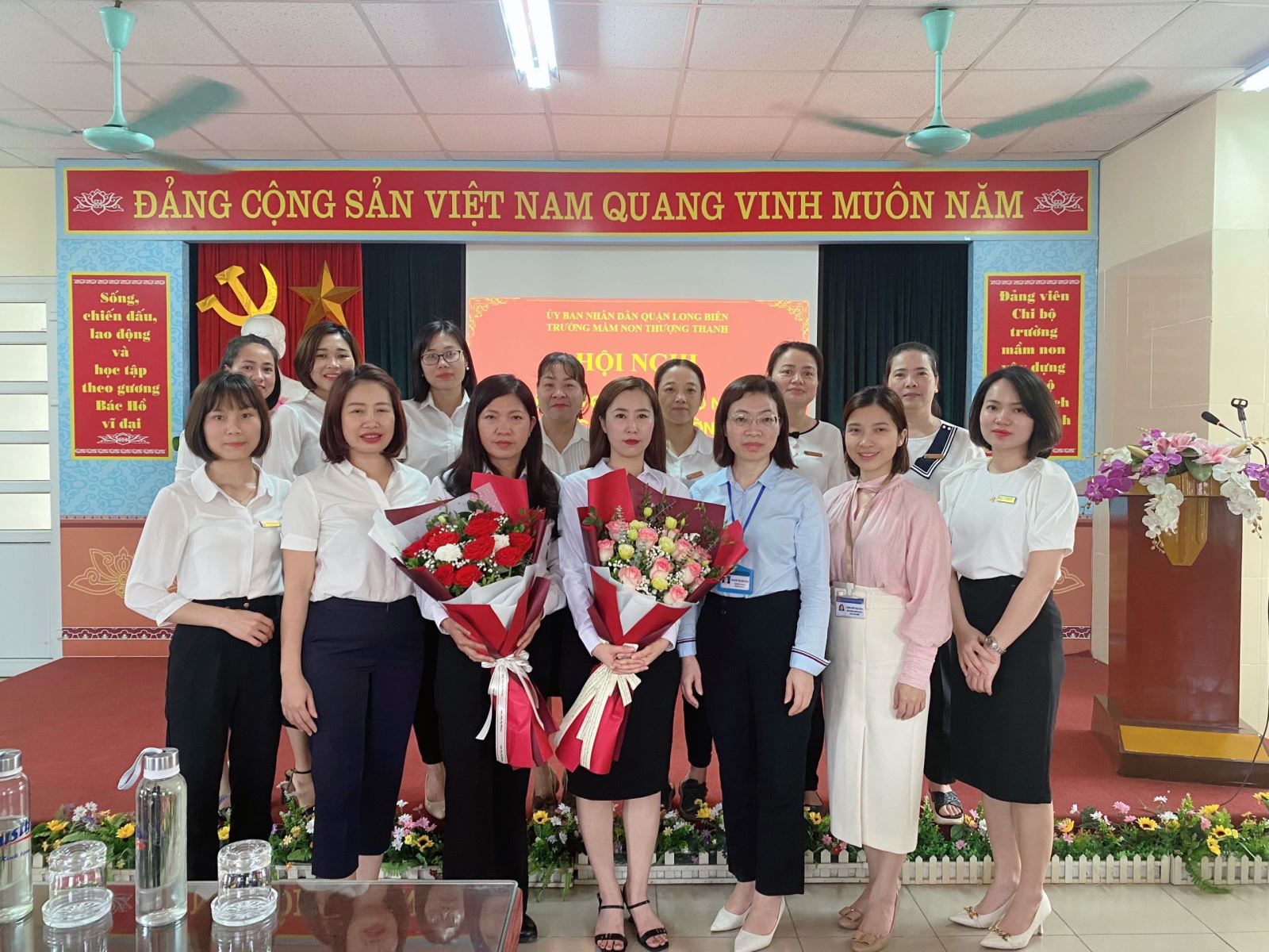 Chiều 22/03/2023, trường mầm non Thượng Thanh vinh dự được đón đoàn công bố quyết định bổ nhiệm. Đoàn công bố quyết định có bà Nguyễn Thị Thu Hằng – Quận Ủy viên - Trường phòng Nội vụ quận Long Biên, bà Dương Kiều Ngọc Loan – Phó phòng Nội vụ quận Long Biên.