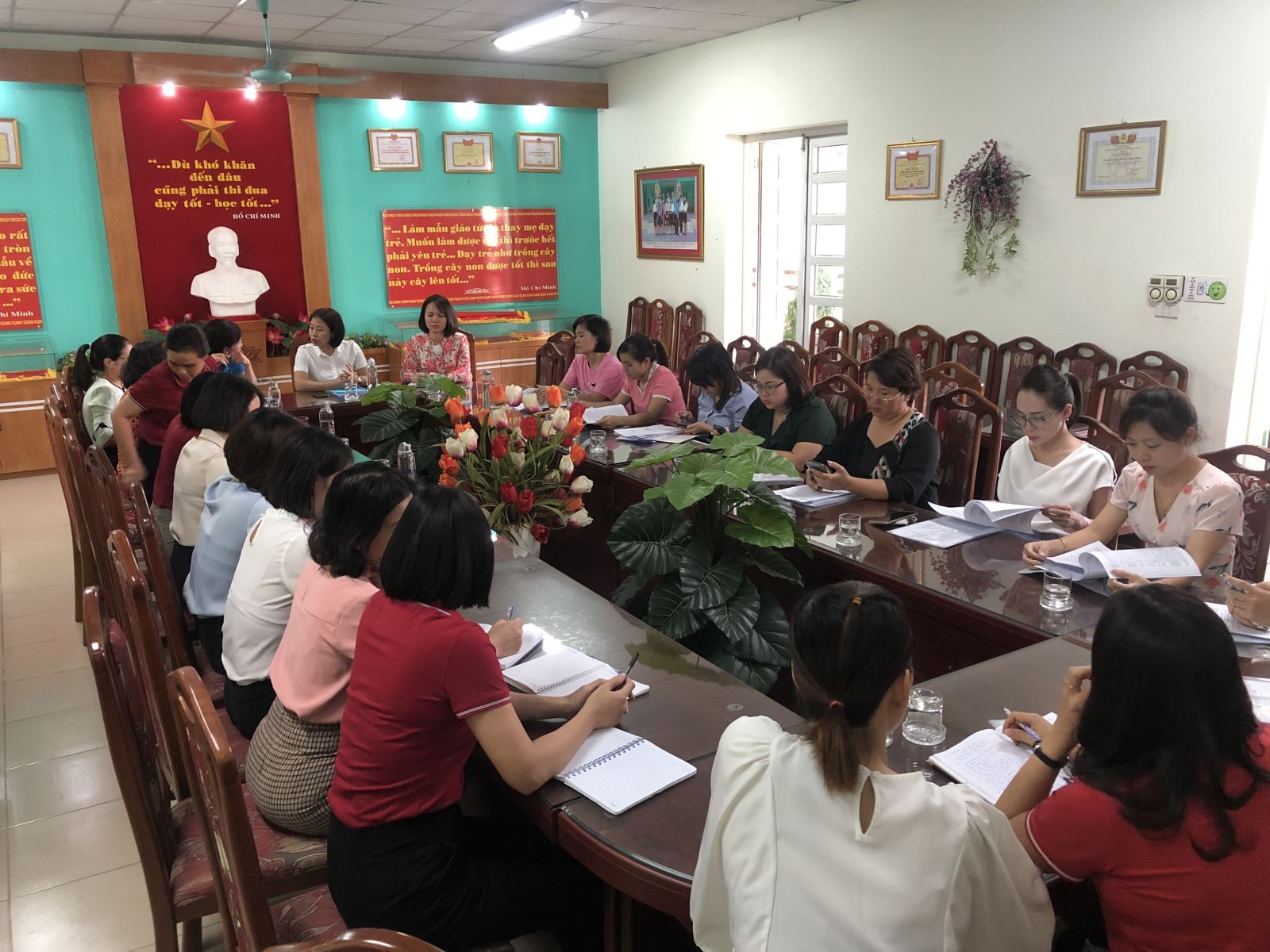 Đến dự cuộc họp có các ông bà là đại diện cha, mẹ học sinh 11 lớp, các đồng chí trong ban giám hiệu cùng đại diện giáo viên của 11 nhóm lớp tới dự đông đủ.