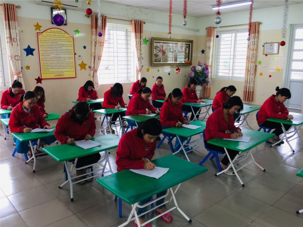 `Sau khi khai mạc hội thi, các đ/c giáo viên và nhân viên được tham gia phần thi lý thuyết theo hình thức trắc nghiệm và tự luận. Phần thi thực hành sẽ diễn ra vào thời gian tới. Giáo viên sẽ được bốc thăm đề tài và chuẩn bị trong vòng 1 tuần.