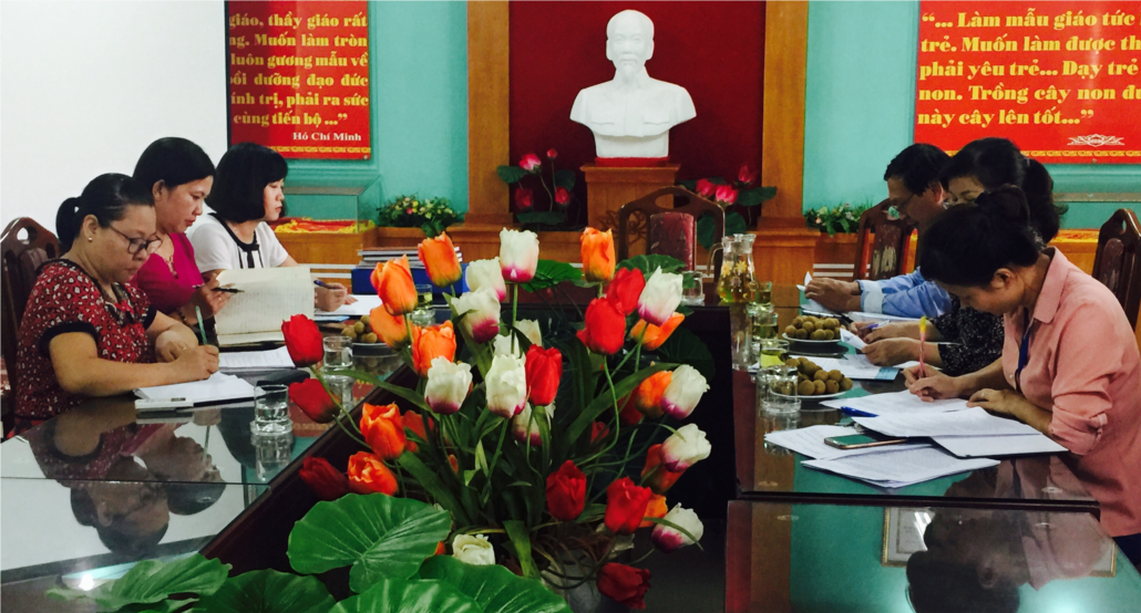 Tại buổi làm việc, Đ/c Nguyễn Thị Ngọc Hân – Bí thư chi bộ - Hiệu trưởng nhà trường và Đ/c Phan Thị Hòa – CUV - Phó hiệu trưởng nhà trường đã đọc báo cáo giải trình theo kế hoạch giám sát của Đảng ủy P.Thượng Thanh. Các thành viên trong đoàn giám sát cũng đã hoàn toàn nhất trí với báo cáo của nhà trường, đồng thời cũng đưa ra một số góp ý để chi bộ và đồng chí BTCB của nhà trường làm tốt hơn nữa trong công tác lãnh đạo, chỉ đạo và tổ chức thực hiện Nghị quyết Trung Ương 4 (khóaXII) về “Tăng cường xây dựng Đảng, ngăn chặn đẩy lùi sự suy thoái về tư tưởng chính trị, đạo đức, lối sống, những biểu hiện “tự diễn biến”, “tự chuyển hóa” trong nội bộ”.