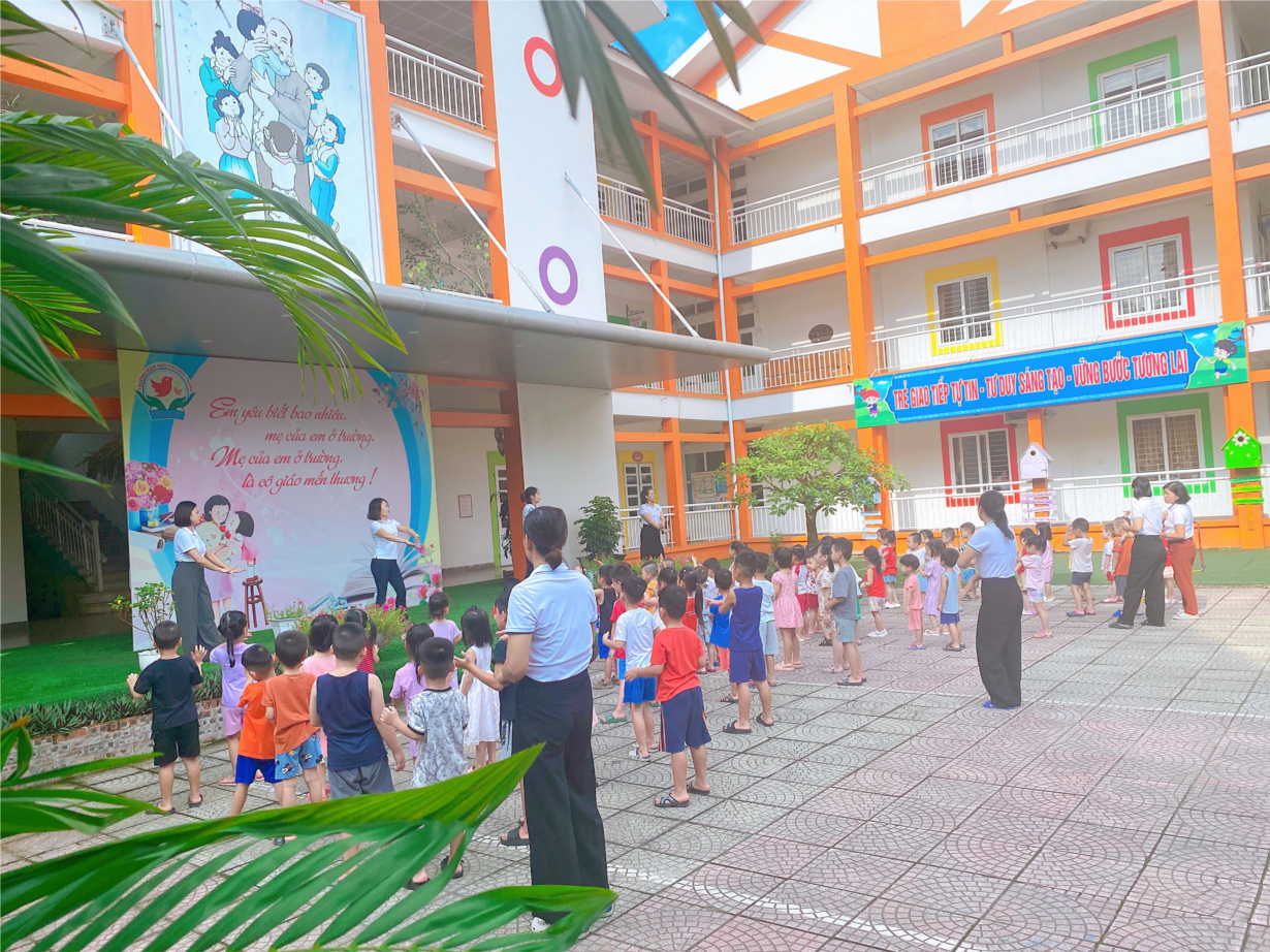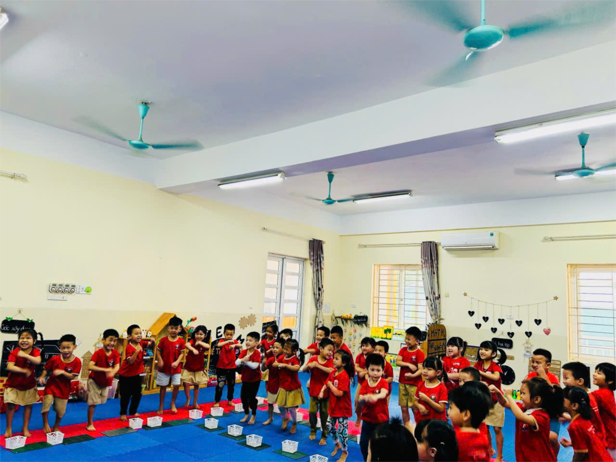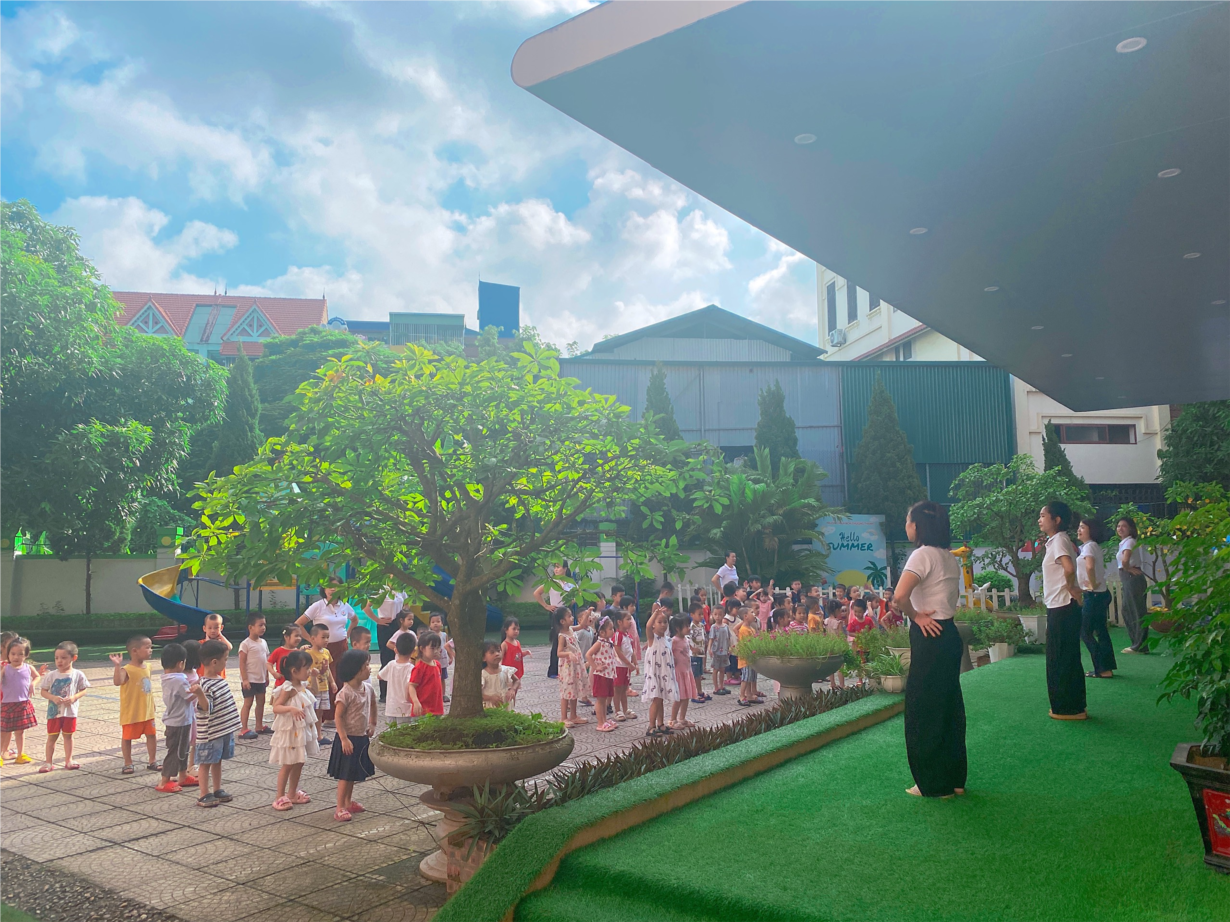 Cùng các bé trường MN Thượng Thanh tập thể dục sang trong không gian xanh mát và yêu thương