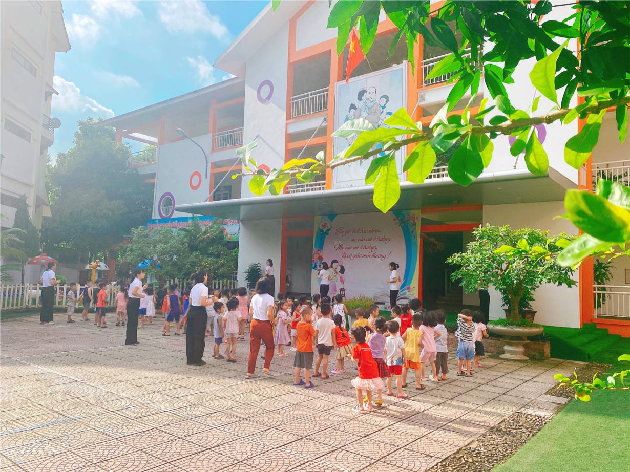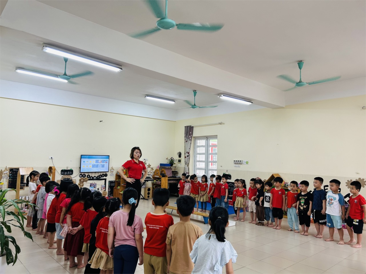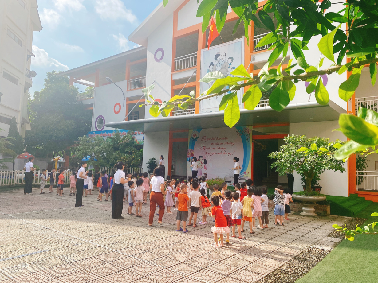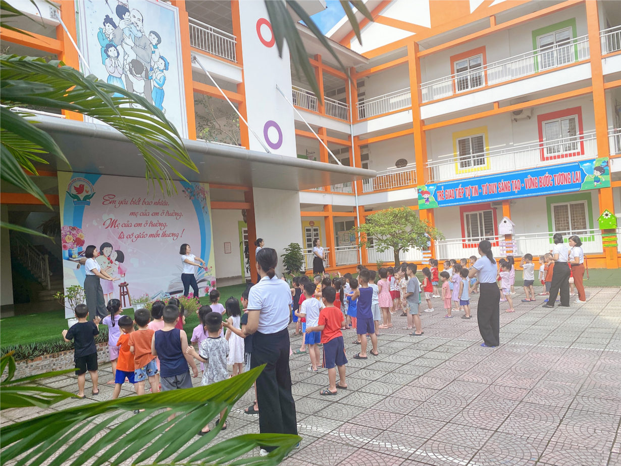 Cùng các bé trường MN Thượng Thanh tập thể dục sang trong không gian xanh mát và yêu thương