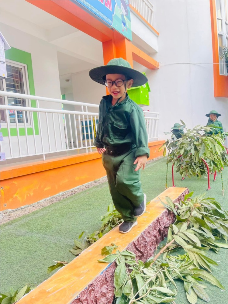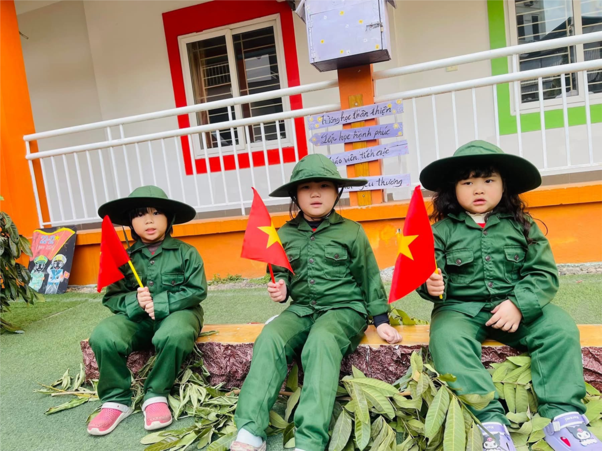 Album ảnh đẹp tháng 12:Cùng các bé lớp A2 trải nghiệm làm chú bộ đội