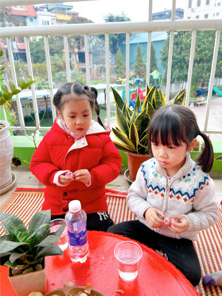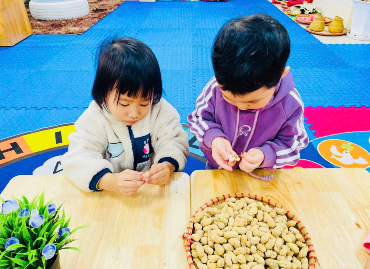 Album ảnh đẹp tháng 3: Hình ảnh trải nghiệm bóc vỏ lạc của các bạn nhỏ lớp MGB C2