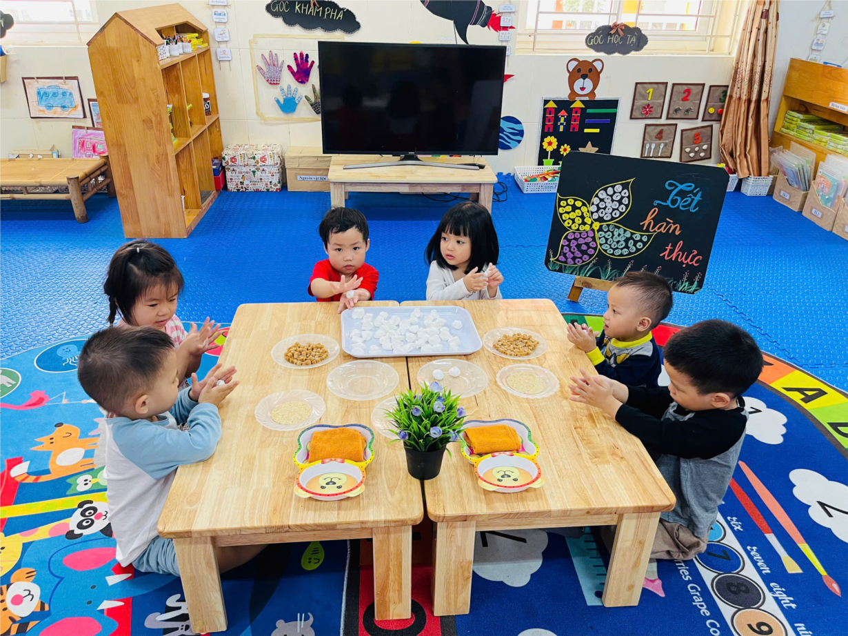 Album ảnh đẹp tháng 3: Hình ảnh các bạn nhỏ lớp MGB C2 tham gia nặn bánh trôi ngày Tết Hàn thực 3/3.