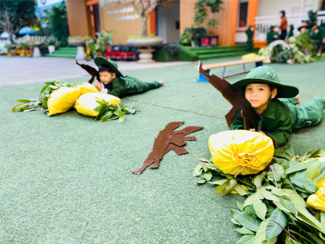 Thư viện ảnh Album ảnh đẹp T12 : Các bé lớp B2 tập làm chú bộ đội