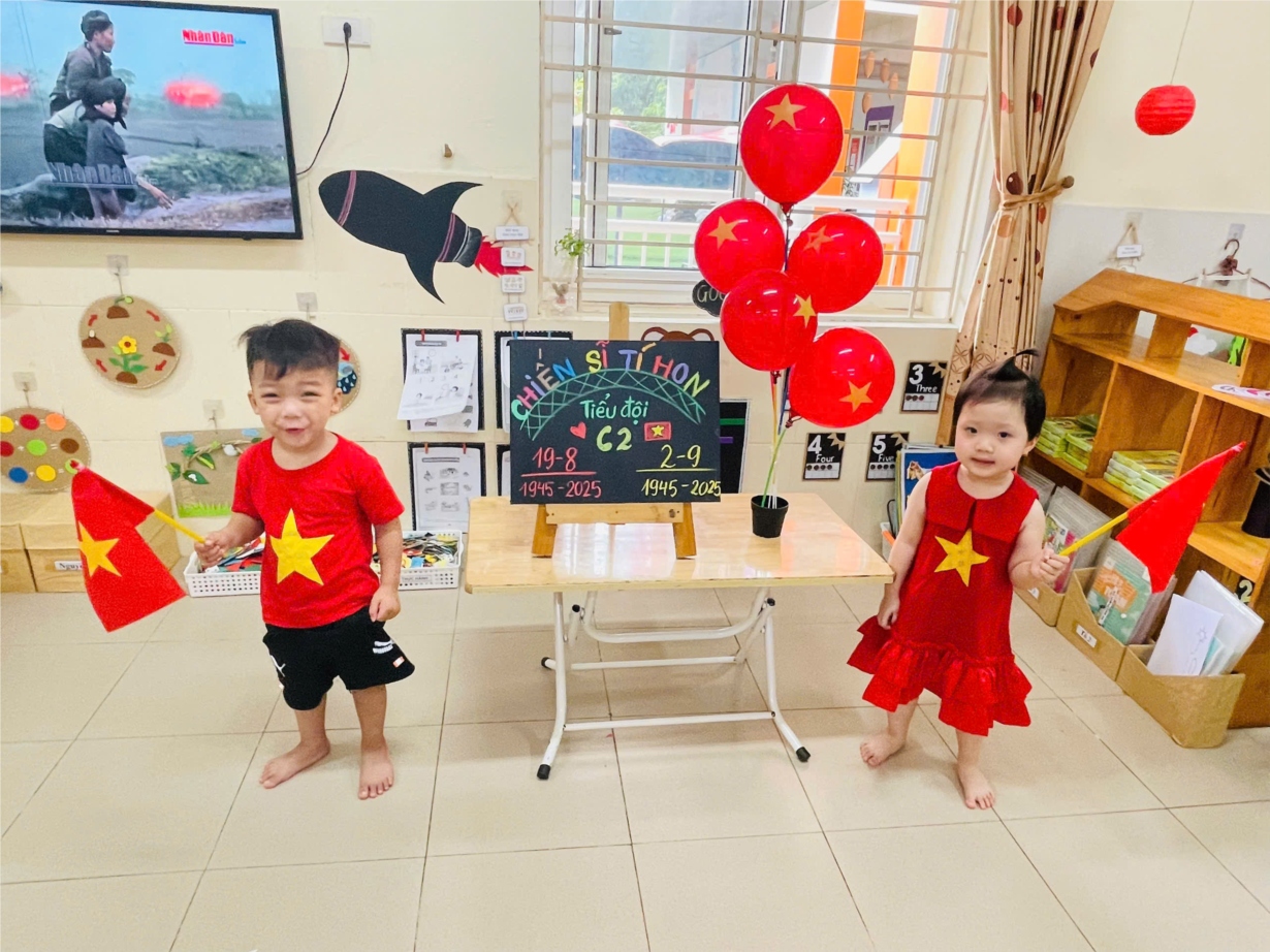 Album ảnh đẹp tháng 8: Hình ảnh các bạn nhỏ lớp MGB C2 tham gia chương trình chúng tôi là chiến sĩ tí hon chào mừng 80 năm ngày Cách mạng tháng 8 và Quốc khánh 2/9.