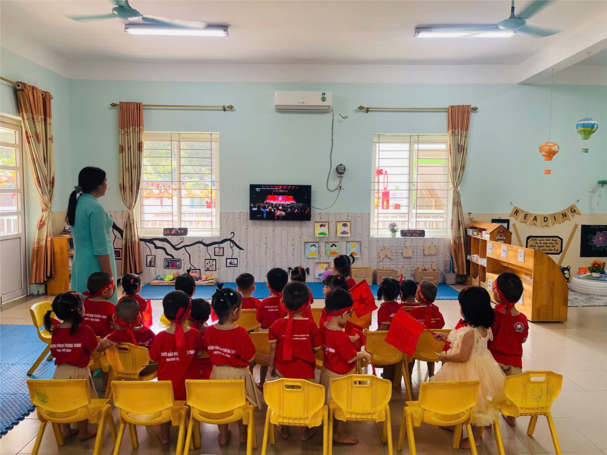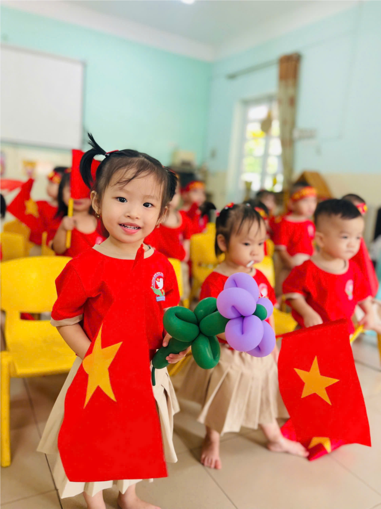 Album ảnh đẹp tháng 8: Hình ảnh bạn nhỏ lớp MGN B1 tham gia chương trình chúng tôi là chiến sĩ tí hon chào mừng 80 năm ngày Cách mạng tháng 8 và Quốc khánh 2/9.