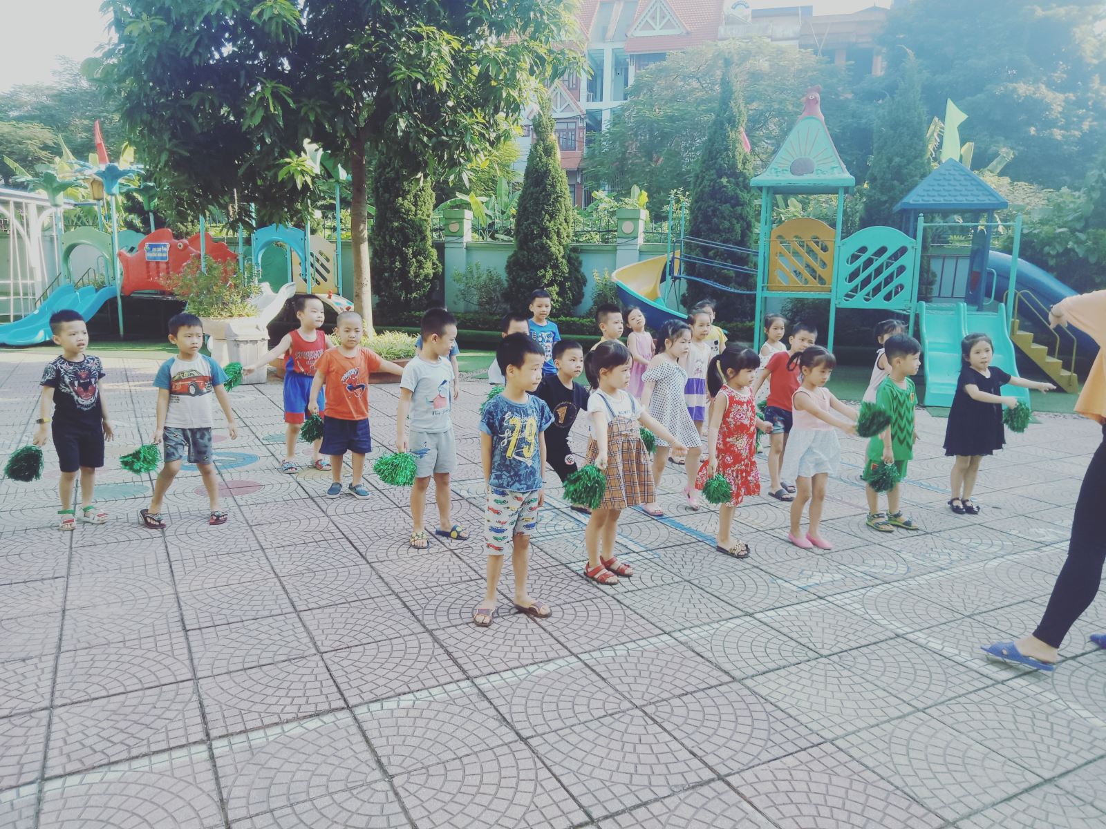 Một số hình ảnh đã được ghi lại trong giờ tập thể dục sáng của các bạn bé khối mẫu giáo lớn, trường mầm non Thượng Thanh: