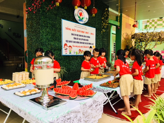 Phần mong đợi nhất của các con là phần tiệc buffet