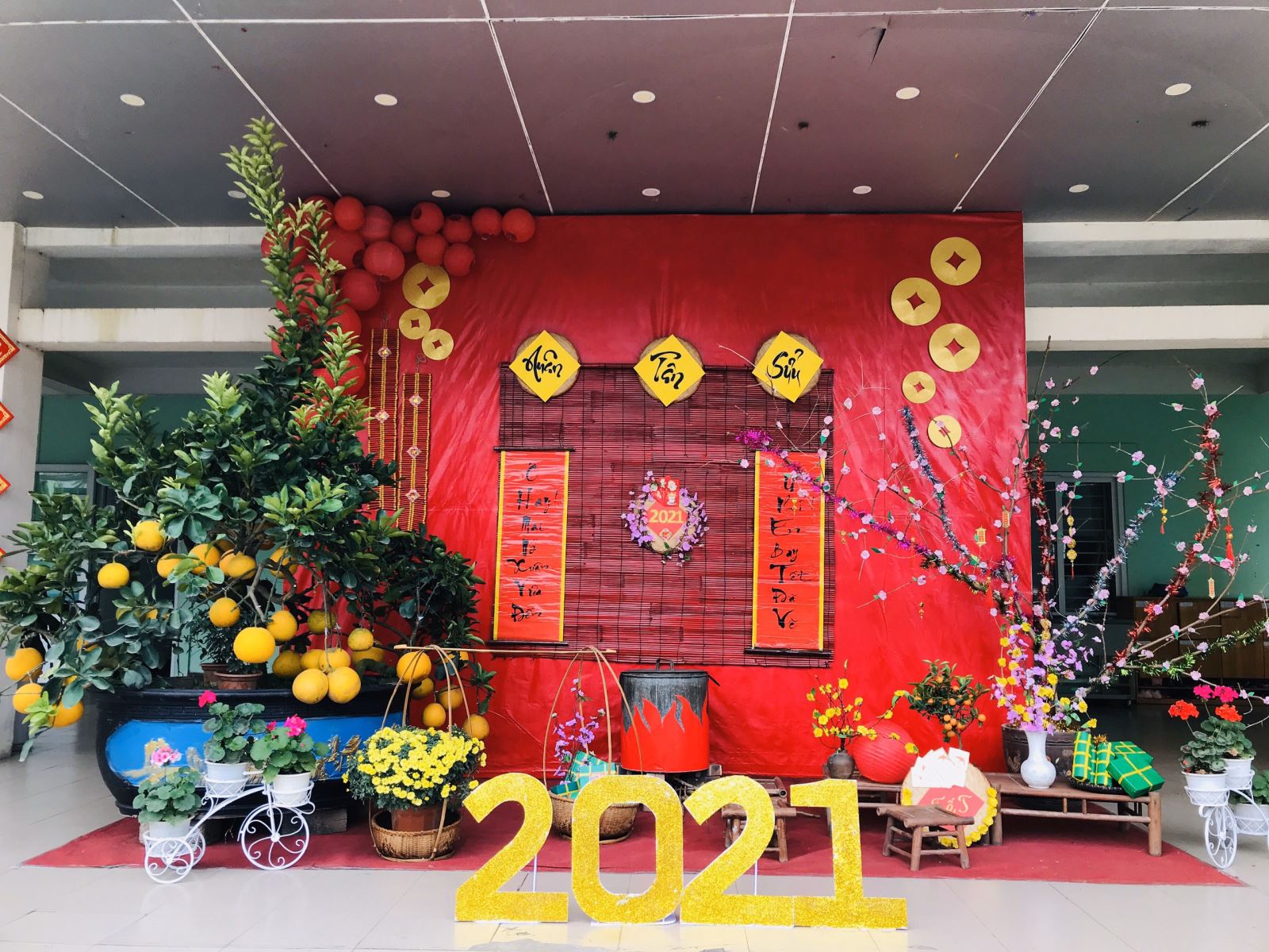 Để tạo không khí ấm áp, rộn ràng cho trẻ, các cô giáo đã trang trí sân trường cây đào rực rỡ, điểm thêm vài giỏ hoa thật nhiều màu sắc cùng những câu đối, nồi bánh chưng…Tất cả chỉ với hi vọng mang đến cho các bé một không khí tết thật xinh tươi và thật nhiều niềm vui nhất.