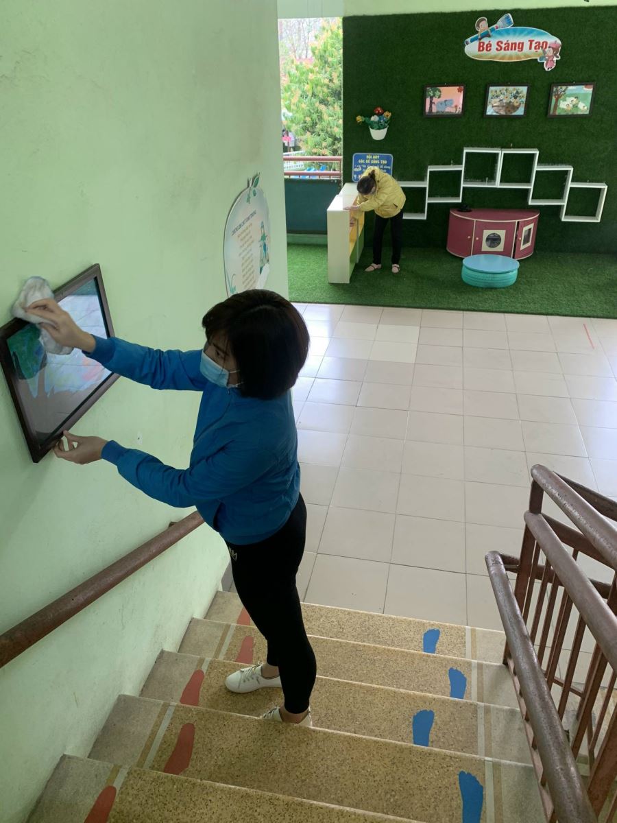 Dưới đây là một số hình ảnh tập thể cán bộ, giáo viên trường Mẫu giáo Mầm non Thượng Thanh dọn dẹp, tổng vệ sinh toàn trường: