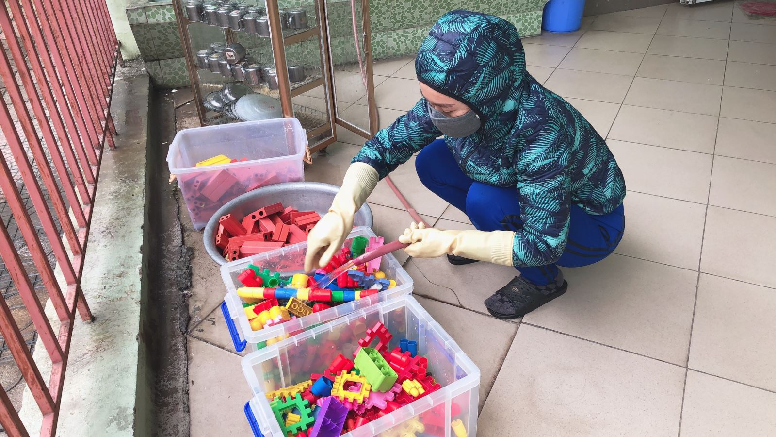 Trước đó ngày 6/2 trường Mầm non Thượng Thanh đã phối hợp với Trung tâm Y tế quận Long Biên tổ chức phun diệt khuẩn toàn bộ khuôn viên trường gồm: khu vực lớp học, phòng chức năng, khu vui chơi trong trường...Ngoài việc giám sát, hiệu trưởng nhà trường cùng các cô giáo, nhân viên của trường tham gia vệ sinh, lau, rửa đồ chơi, các phòng học, một số phòng chức năng, khu vực sân chơi…