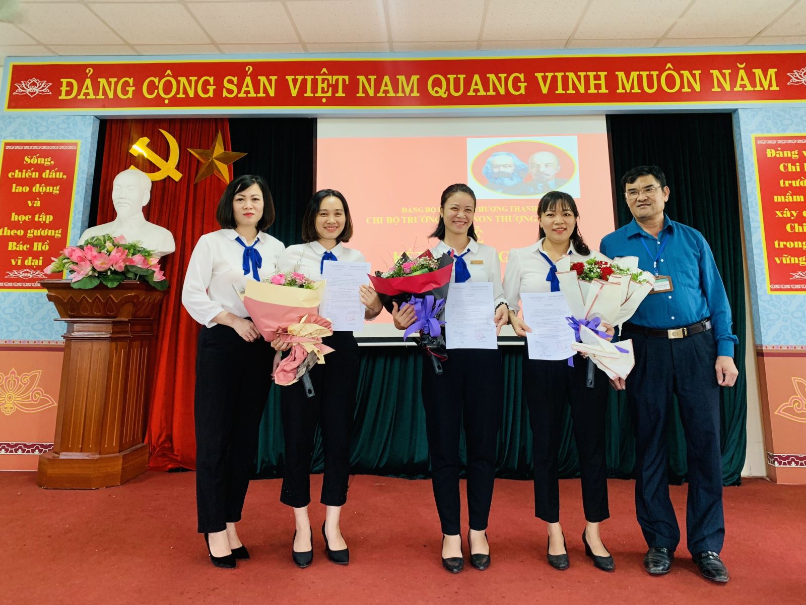 Hôm nay, ngày 08/10/2020, Chi bộ trường Trường mầm non Thượng Thanh đã long trọng tổ chức lễ kết nạp Đảng viên mới Đối với 3 đồng chí ưu tú: Nguyễn Thị Hồng Nhung, Dương Thị Hồng, Nguyễn Thị Huyến. Đây là sự kiện có ý nghĩa quan trọng trong công tác xây dựng Đảng, góp phần phát triển, nâng cao chất lượng và sức chiến đấu của Chi bộ trường nói chung và các cá nhân Đảng viên nói riêng.