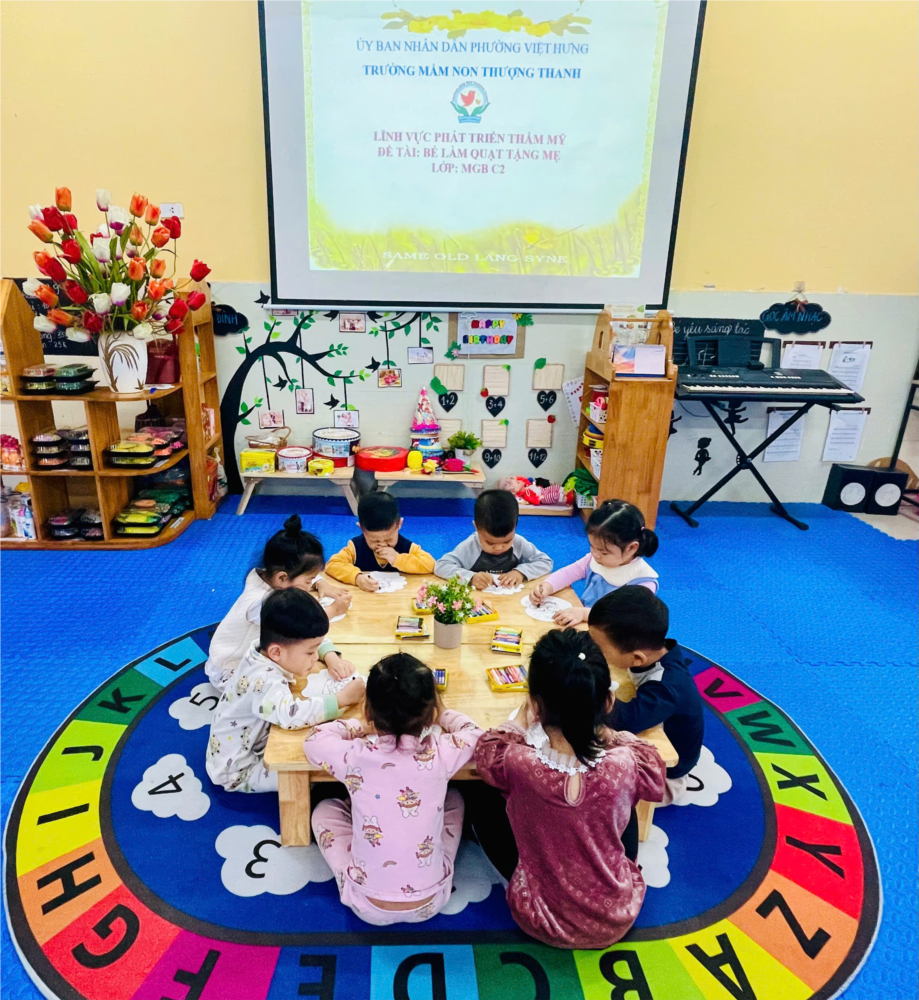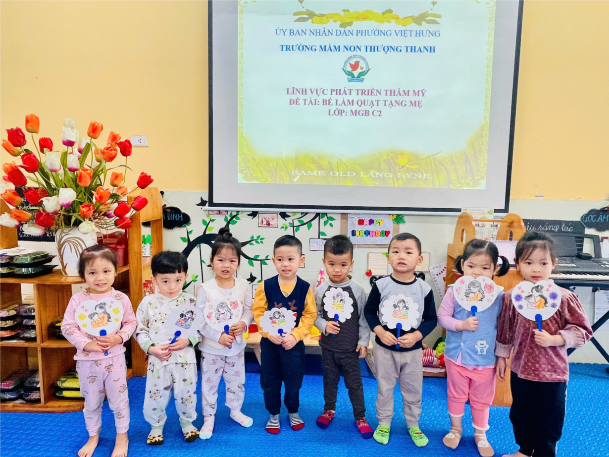 Album ảnh đẹp tháng 3: Bé khéo tay trang trí quạt tặng mẹ của các bé lớp MGB C2.